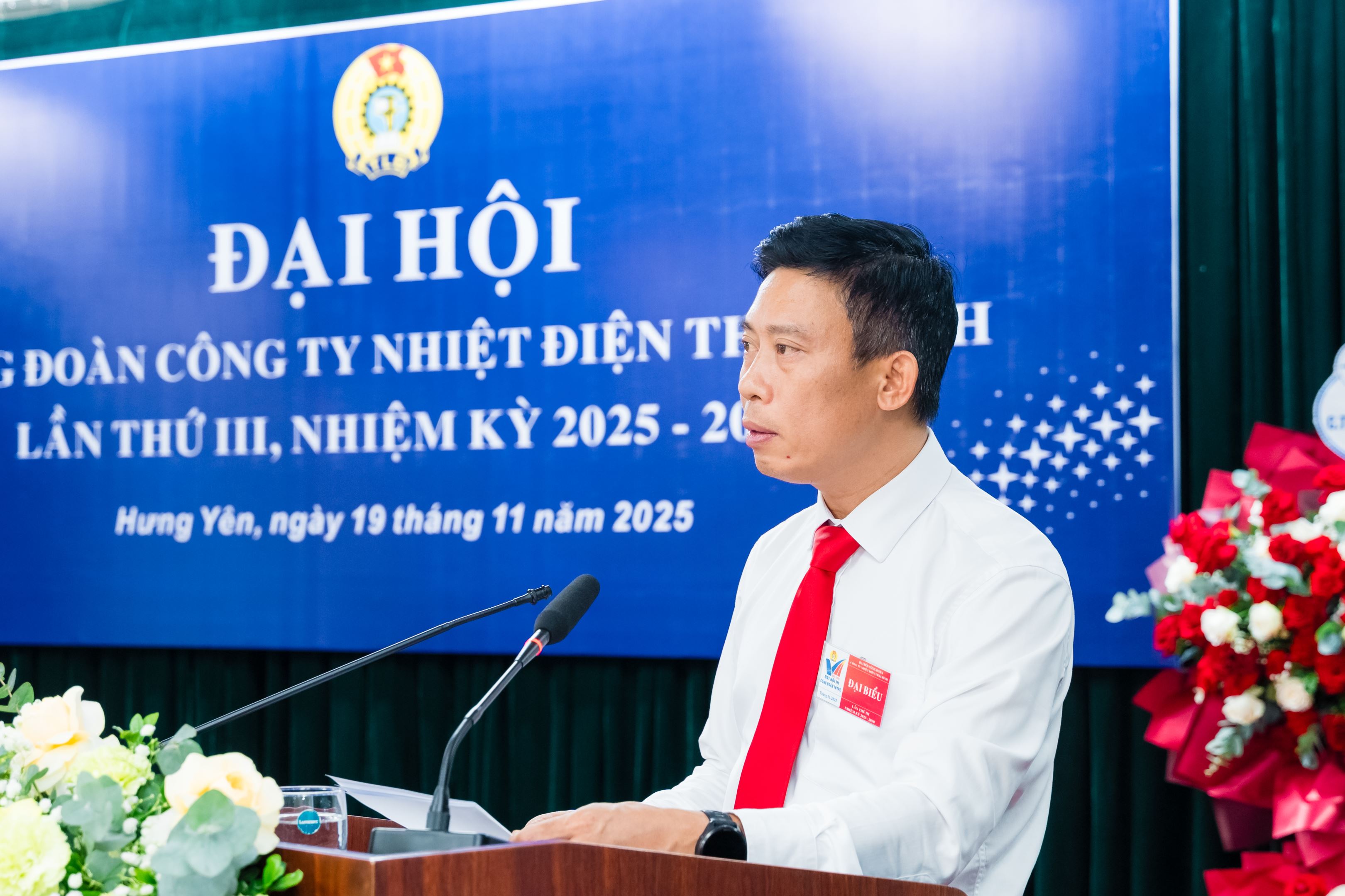 Đồng chí đã biểu dương Công đoàn Công ty Nhiệt điện Thái Bình là một trong những đơn vị có nề nếp hoạt động bài bản, hiệu quả và sáng tạo trong hệ thống Công đoàn ĐLVN. Trong phát biểu chỉ đạo, đồng chí nhấn mạnh một số nội dung quan trọng:Công đoàn Công ty phải tiếp tục đặt công tác an toàn, kỷ luật lao động lên hàng đầu; mỗi cán bộ, đoàn viên cần biến an toàn lao động trở thành giá trị cốt lõi trong văn hóa EVN. Công đoàn phải đồng hành cùng chuyên môn đẩy mạnh công tác chuyển đổi số, toàn diện trên mọi lĩnh vực từ quản trị, vận hành, an toàn đến đào tạo nguồn nhân lực, nhằm tạo ra sự thay đổi thực chất về năng suất và chất lượng công việc. Trong bối cảnh chuyển dịch năng lượng và thách thức mới của ngành điện, cán bộ công đoàn phải chủ động hơn nữa trong nắm bắt tư tưởng người lao động, giải quyết hài hòa giữa quyền lợi trách nhiệm kỷ luật. Giữ vững vai trò là tổ ấm của người lao động, là cầu nối tin cậy giữa người lao động và lãnh đạo chuyên môn. Phối hợp chăm lo đời sống, việc làm, thu nhập và sự an tâm của người lao động chính là nền tảng cho hoạt động sản xuất kinh doanh của đơn vị.