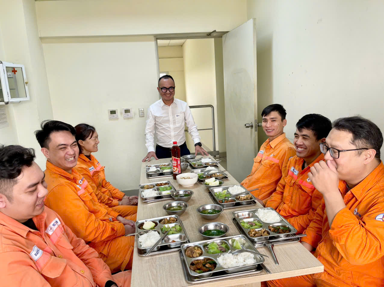 Do đặc thù sản xuất, Bữa cơm tất niên được Công đoàn Công ty tổ chức và phục vụ trực tiếp tại từng vị trí làm việc của các ca vận hành, không làm gián đoạn công tác sản xuất điện.