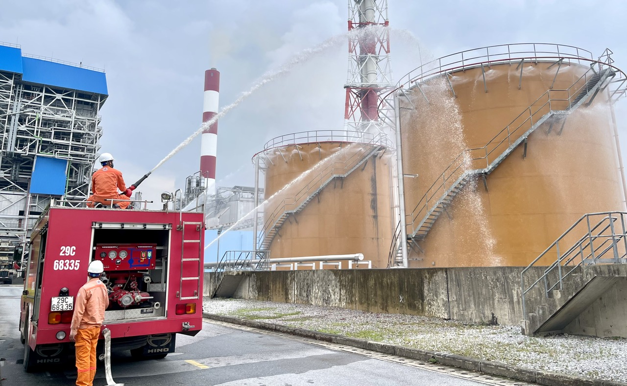 Diễn tập phương án chữa cháy khu vực bể chứa dầu số 02 tại Nhà máy Nhiệt điện Thái Bình
