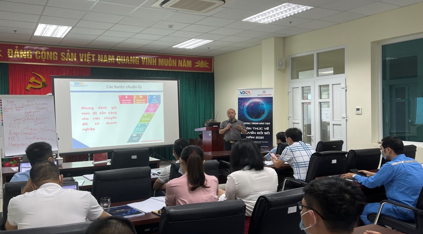 Với thực tế về chuyển đổi số trong đơn vị sản xuất điện. Công ty Nhiệt điện Thái Bình đã tổ chức cho CBCNV Công ty tham gia chương trình đào tạo nhận thức về Chuyển đổi số (CĐS) trong thời gian từ ngày 01/7 đến ngày 08/7/2021, được truyền đạt bởi các chuyên gia của Trung tâm nghiên cứu và đào tạo, bồi dưỡng kiến thức truyền thông số.